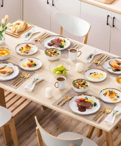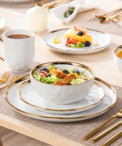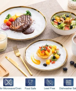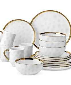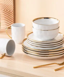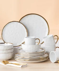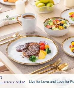 Elevate your dining experience with Aura, LOVECASA Gold Aura Glossy Porcelain Dinnerware Set  that exudes modern glamor. Each piece showcases a unique irregular shape with a glossy and solid finish that accentuates its sophistication.Â