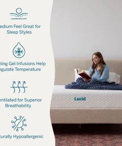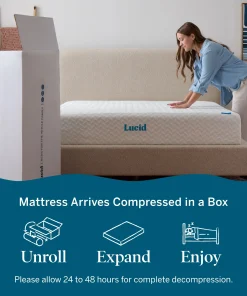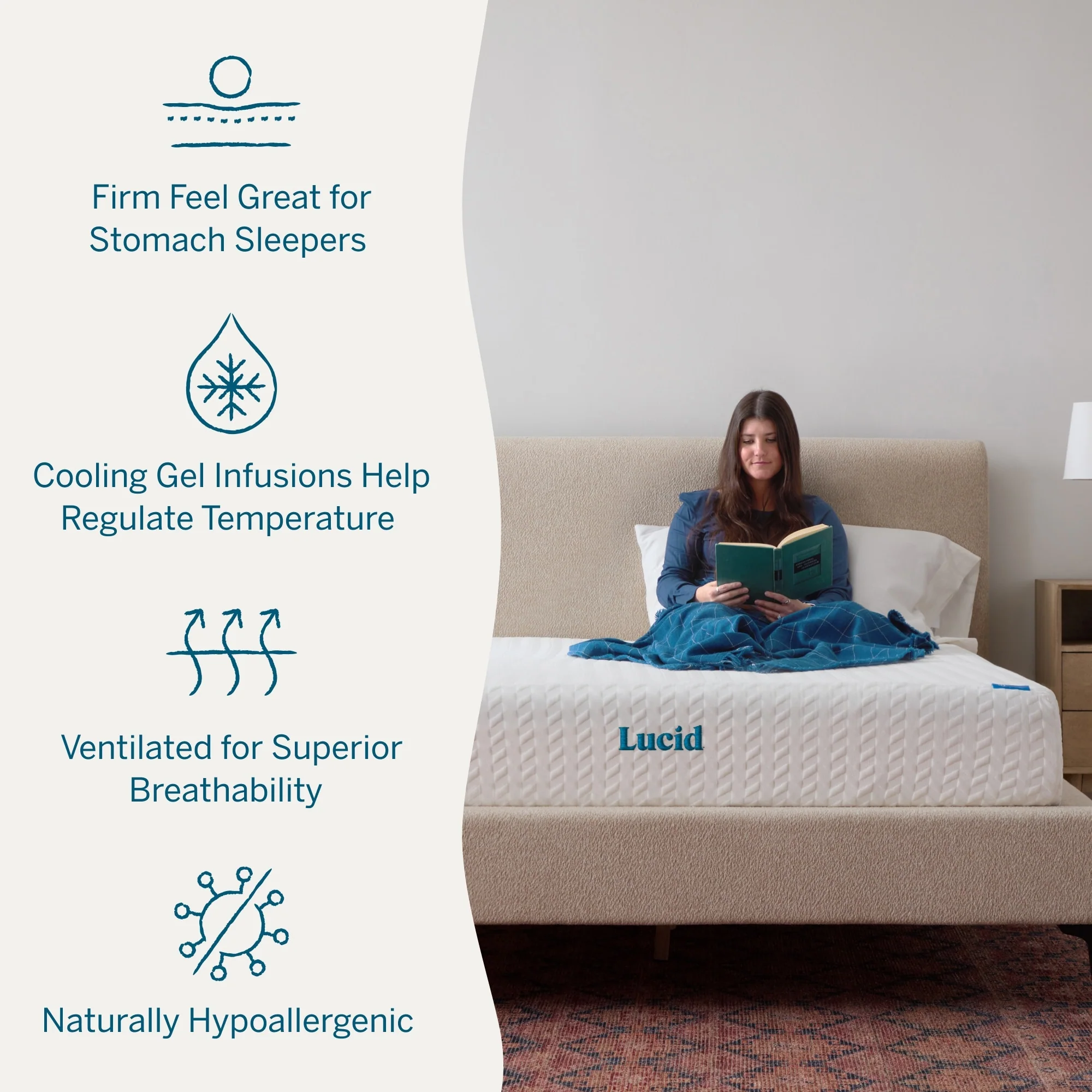 The Lucid 10" Gel Memory Foam Mattress was made for anyone who loves comfort and premium support. This memory foam mattress offers cloud-like comfort that’s impossible to resist as it contours to the shape of your body for personalized comfort and support. The cooling gel-infused memory foam helps regulate body temperature to create an even more comfortable sleep environment. And the ventilation channels placed throughout the memory foam help to increase airflow and improve breathability. This bed in a box is shipped right to your door; simply place it on your bed, give it 24 to 48 hours to fully expand, and then relax in the luxurious comfort of this plush memory foam mattress. Â