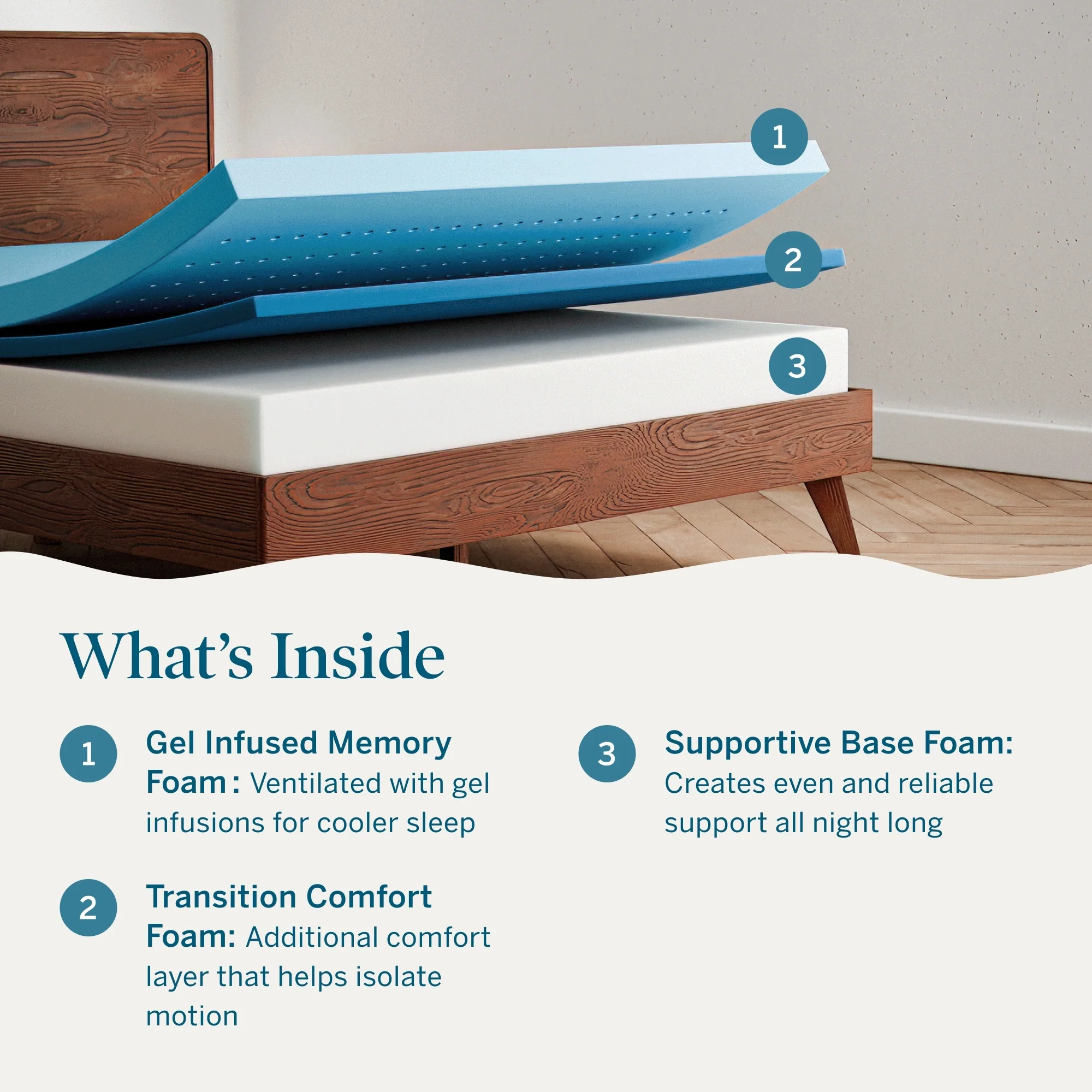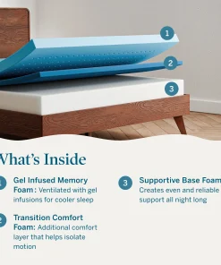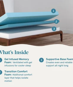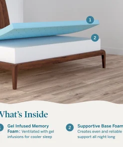 - COOLER SLEEP: Cooling gel is infused in the memory foam to help regulate your sleep temperature and keep you comfortable all night long Â