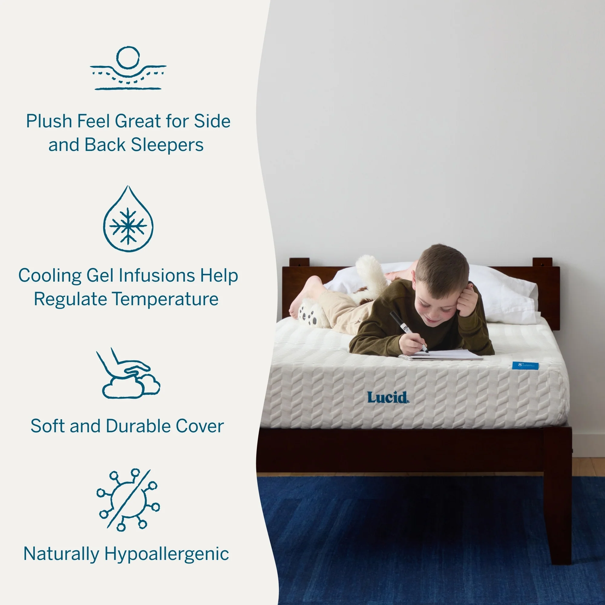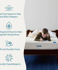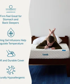 At Lucid, we understand that finding an affordable mattress can be a challenge, so we designed the Lucid 8" Gel Memory Foam Mattress with plush and firm options. With an affordable price and comfort that lasts, this mattress is an excellent fit for young adults or any guest that may stay in your home. With two inches of gel memory foam and six inches of base foam, this comfortable and supportive mattress in a box comes compressed and rolled for easy shipping. Plus, this 8" mattress is great for a college dorm, putting your mind at ease when your undergrad heads off to college. Comfort awaits.