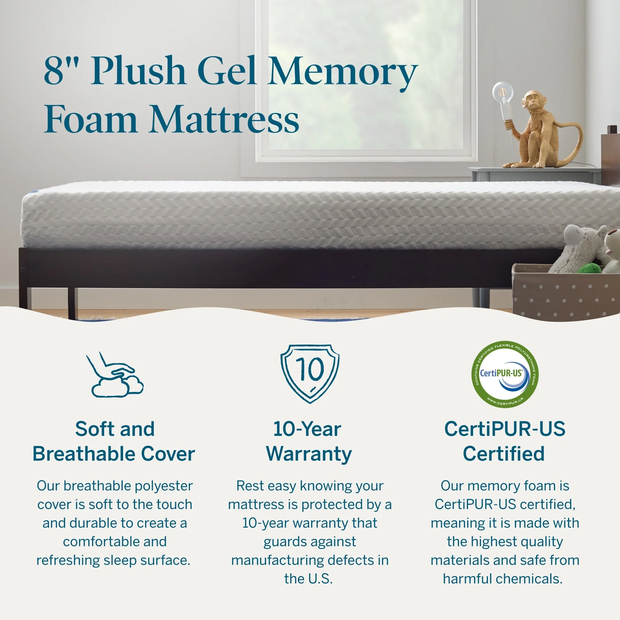- 10-YEAR WARRANTY: Our quality construction and CertiPUR-US certified materials are guaranteed with a 10-year warranty Â