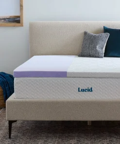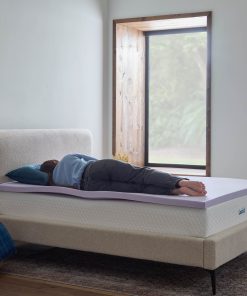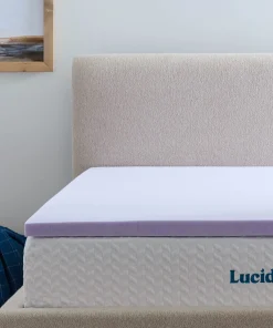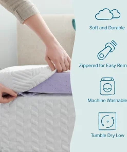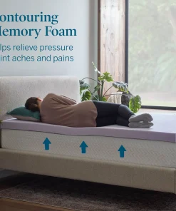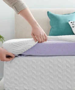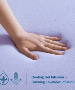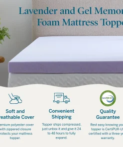 This memory foam mattress topper offers a plush and contouring comfort, with a cooling gel infusion and soothing lavender infusion to keep you sleeping comfortably all night long. All of that cozy goodness is wrapped in a super soft and breathable polyester, viscose, and spandex blend cover that can be removed and machine washed whenever it gets dirty. This innovative memory foam mattress topper is available in two, three, and four inch profiles to add versatile comfort to your old, hard, or just uncomfortable mattress. No matter your comfort preferences, this lavender and gel memory foam mattress topper will help you sleep better. It is compressed, rolled, and shipped in an easy-to-carry box right to your front door. Place it on your mattress, give it 24 to 48 hours to fully expand and then experience the calming and cooling bliss of this unique memory foam mattress topper.
