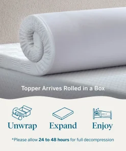 - COMPRESSED FOR CONVENIENT SHIPPING: This soft memory foam mattress topper is rolled, compressed, and shipped in a box right to your front door; allow 24 to 48 hours to fully decompressÂ