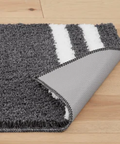 Contrasting Color Striped Bathroom Rugs, Non-Slip Plush Shaggy Bath Carpet, Bath Mats