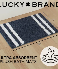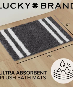 Lucky Brand Harden Striped Heathered Bath Rug with Anti-Skid Backing