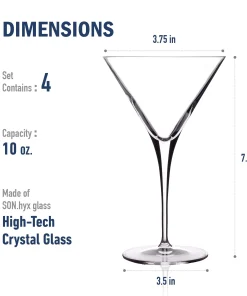 - Advanced Crystal Innovation: Crafted from lead-free crystal glass, these martini glasses use SON.hyx technology for exceptional clarity and break resistance, ideal for any glassware collection.