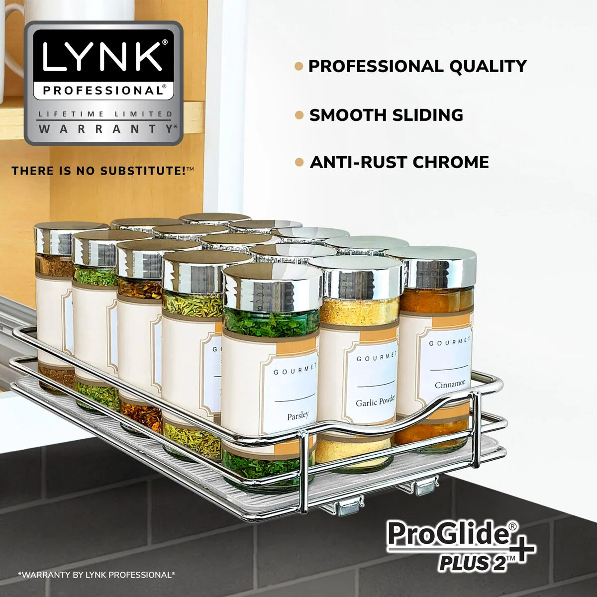 FEEL LIKE A PROFESSIONAL COOK WITH EVERYTHING AT YOUR FINGERTIPS – our patented PROGLIDE PLUS 2 with heavy-duty ball bearing glides adjust to perfectly fit the various depths of upper kitchen cabinets giving you easy access, storage, and organization for all your bottles and jars