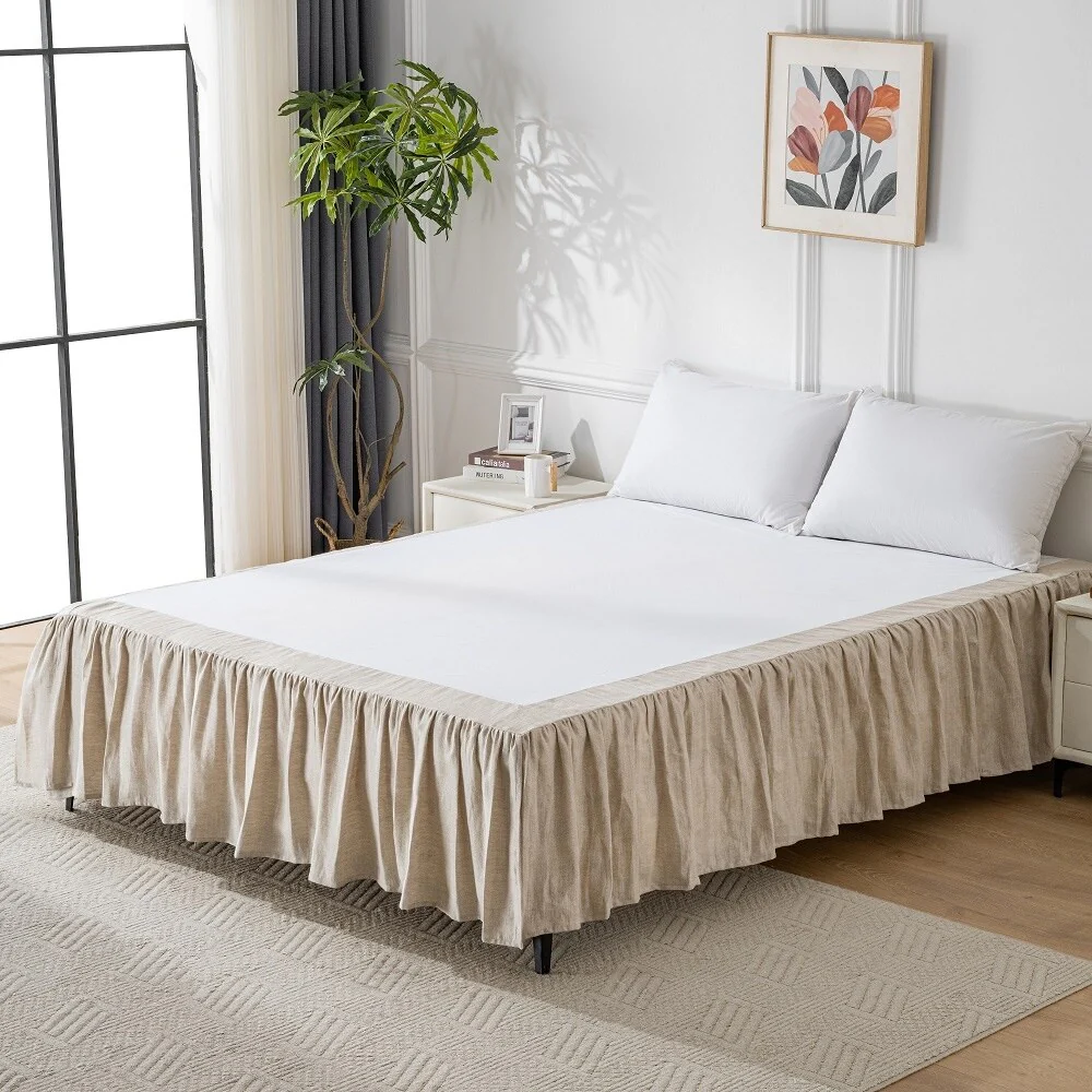 16" Ruffled Linen-Textured Bed Skirt, Deep Drop Coverage for Twin, Full, Queen, King Beds