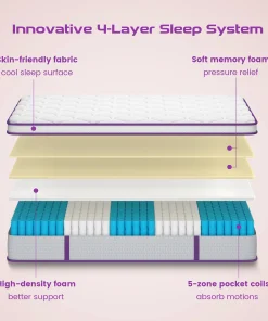 10 Inch Twin/ Full/ Queen Pillow Top Mattress,Memory Foam and Pocket Spring Hybrid Mattress