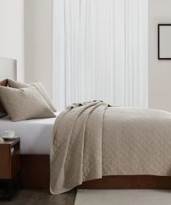 HiEnd Accents Stonewashed Cotton Gauze Traditional Style Solid Color Diamond Stitch 1 Piece Quilt
